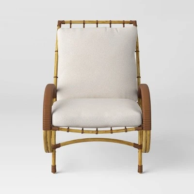 Give your outdoor seating area a striking update with the Sculptured Statement Patio Chair & Ottoman from Opalhouse™. This patio seating set includes a chair and ottoman, both with unique curved frames for some added dimension. The frames have a wooden look for an earthy aesthetic perfect for the outdoors, but they’re actually made from rust-resistant steel that’s great for long-term use. The neutral light brown frames and oatmeal-hued cushions make the pieces easy to coordinate with the rest of your outdoor space, looking just as nice with other neutrals as with brighter colors.