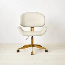 Mahonia Faux Leather Office Chair Cream/Aged Brass – Opalhouse™ Designed With Jungalow™